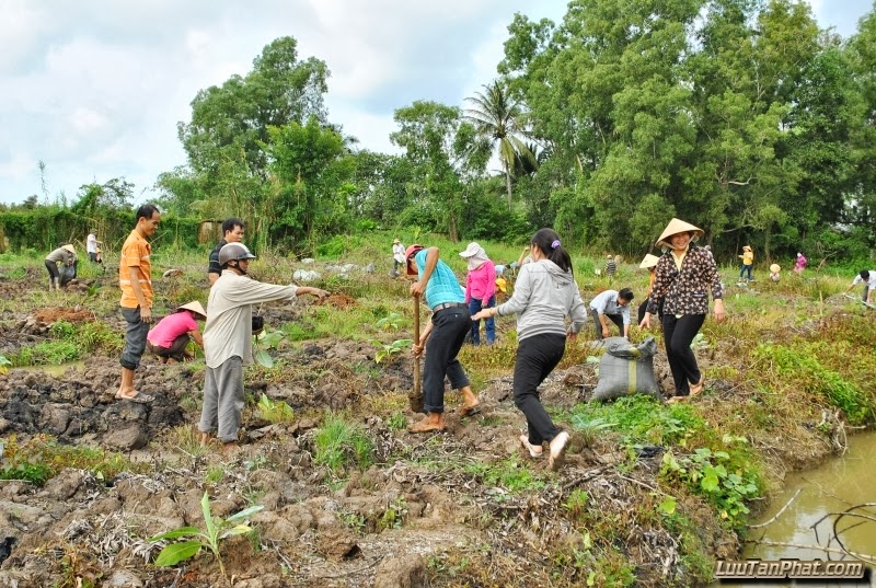 Địa điểm trồng cây là khu đất rộng còn hoang hóa phía sau trường.Hai loại cây phù hợp với điều kiện đất còn phèn chua mặn này là Cây Dừa cao sản và Chuối Ghép mô chất lượng cao.